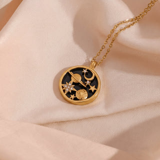 Carry the cosmos with you. An artisinal style necklace capturing the beauty of the night sky.
